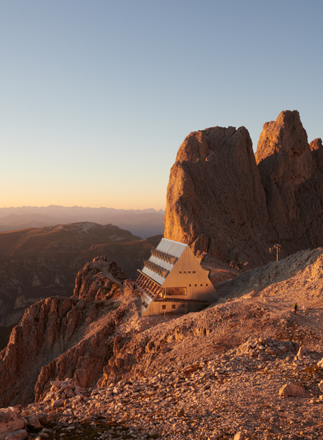 | SCHUTZHAUS SANTNERPASS 2.730m Rosengarten / Dolomiten - IT, 2018 - 2023 Wood Architecture Prize 2024 by Klimahaus - Besondere Anerkennung |